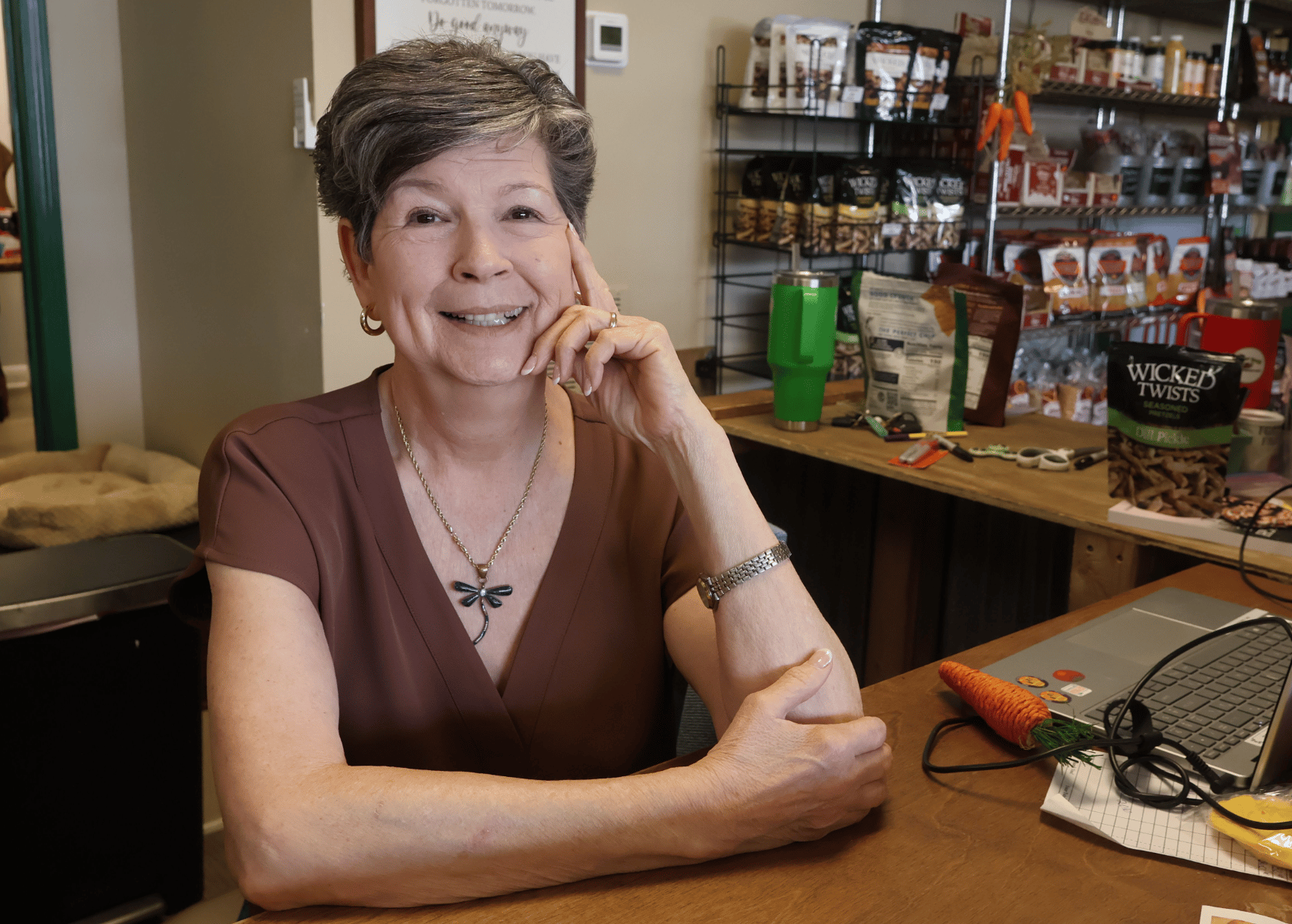 She’s been at the farmers market since 5 a.m., handpicking the produce that will fill her shelves. But when you walk into Thompson’s Market, you’d never guess it. She’s right there in the middle of it all, moving easily from one customer to the next. She greets someone by name, answers a question about tomatoes, rings up a purchase, then turns back to you like the conversation never skipped a beat.